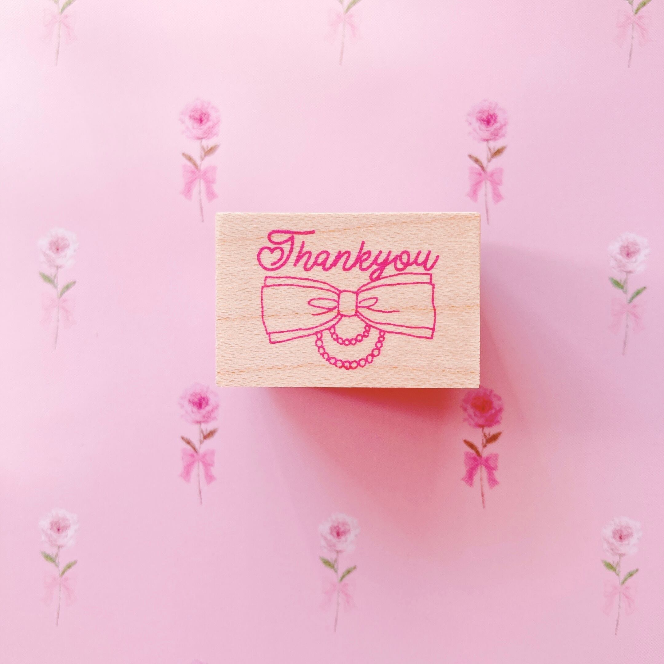 サンキューの英字とリボン&パールをデザインしたスタンプです。